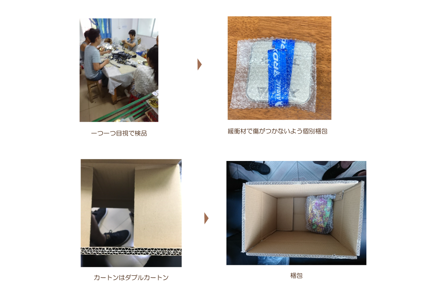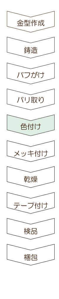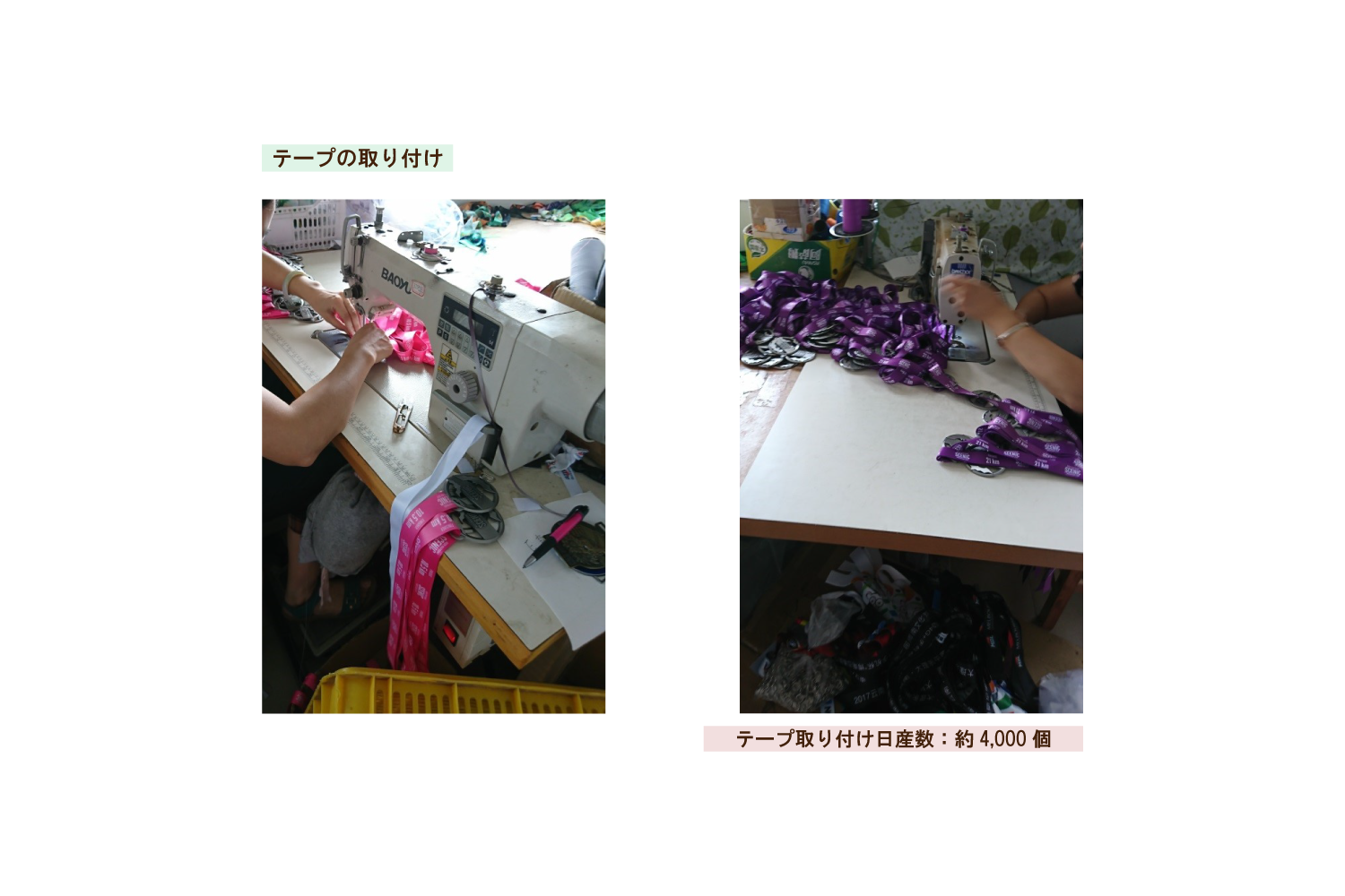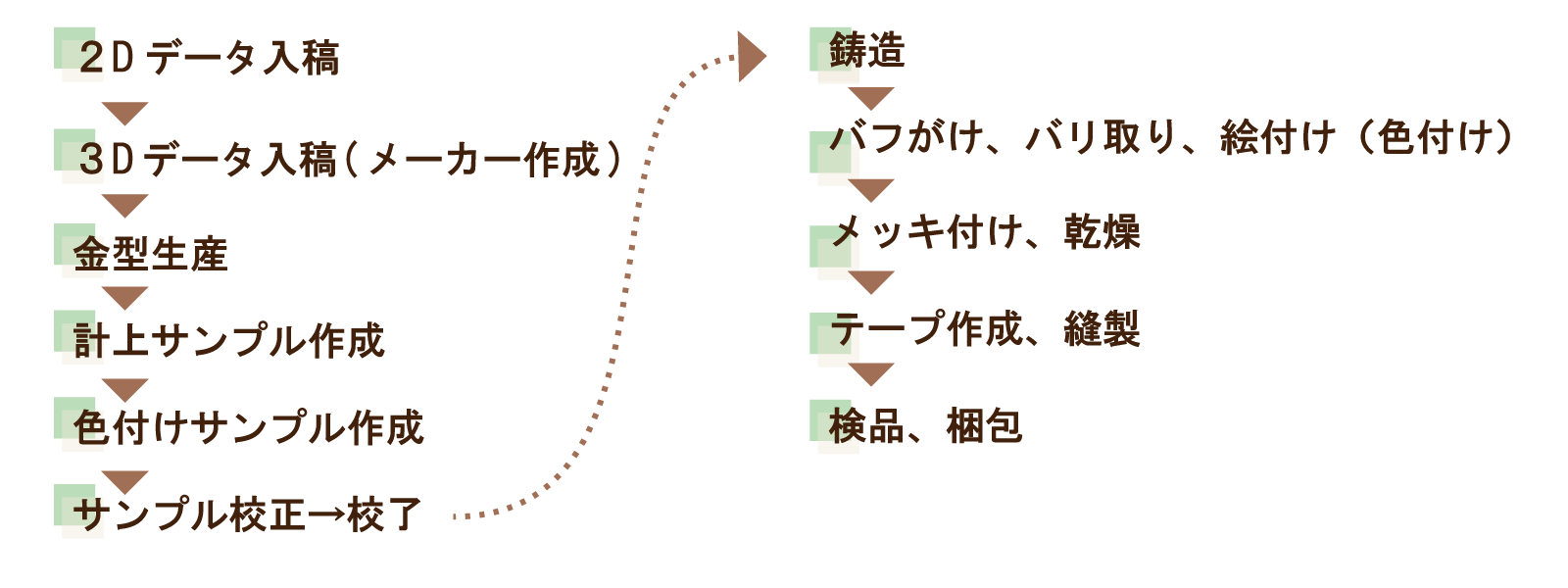 ~ オリジナルメダル ご納品までの流れ ~ 1. 案件内容をヒアリングさせて頂き、クライアント様のニーズを把握。 2. クライアント様のニーズに合致する商品のお見積り、商品サンプル、デザインイメージのご提案。 3. 弊社提携の中国工場にて生産。縫製品から成形物まで幅広く、オリジナル対応が可能です。 4. 通常は工場内にて検品(検針)を行いますが、ご希望によって弊社提携の第三者機関検品対応も可能です。 5. 国内での検品、各種アッセンブリ対応も可能です。お気軽にお問い合わせください。 中国工場にて生産 所在地:中国広東省中三市(メッキ加工は中国全土で一番の技術力と規模) 工場は各工程に分かれており、約20km内にある4工場をしようして完成