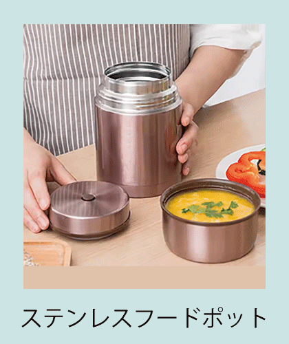 商品 ステンレスフードポット 対応可能数量 500個~(商品仕様や案件ごとに異なります。) サイズ 工場有型より選択 本体色 工場対応色より選択 対応可能素材 ステンレス、PP他 対応可能加工 真空構造 名入れ シルク印刷、パッド印刷、転写印刷 サンプル データ入稿後 約10~15日後 スケジュール 校了後 約40日~ (お急ぎの場合はご相談ください) その他 ケース付き対応可能