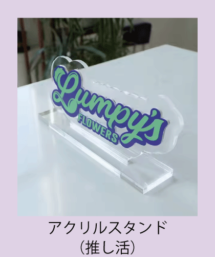 商品 アクリルスタンド 対応可能数量 500個~(商品仕様や案件ごとに異なります。) サイズ オリジナルサイズ対応可能 本体色 PANTONE指定 対応可能素材 アクリル 対応可能加工 ダイカット加工 名入れ シルク印刷、パッド印刷 、インクジェット印刷 、転写印刷、UV印刷、オフセット印刷、レーザー彫刻 サンプル データ入稿後 約10~15日後 スケジュール 校了後 約40日~ (お急ぎの場合はご相談ください) その他