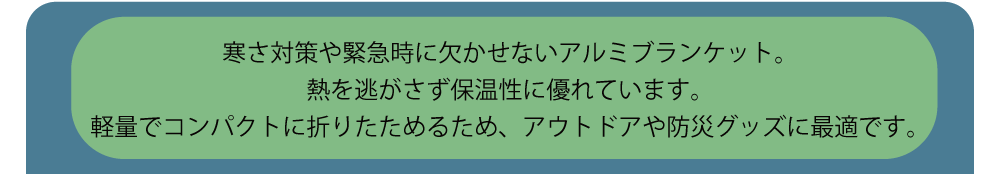 商品 アルミブランケット 対応可能数量 300個~(商品仕様や案件ごとに異なります。) サイズ オリジナル対応可 本体色 PANTONE指定 or 工場対応色より選択 対応可能素材 アルミ、PE、PU 対応可能加工 名入れ 不可 サンプル データ入稿後 約10~15日後 スケジュール 校了後 約40日~ (お急ぎの場合はご相談ください) その他