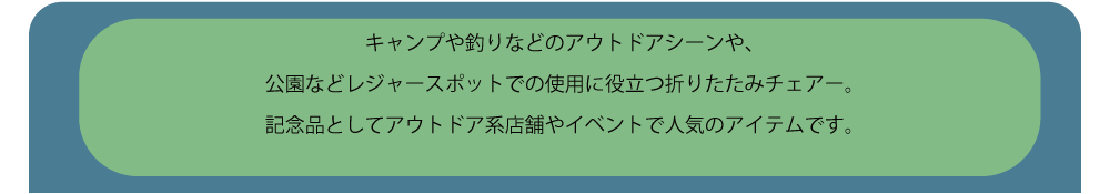 商品 ディレクターズチェア 対応可能数量 500個~(商品仕様や案件ごとに異なります。) サイズ オリジナル対応可 本体色 PANTONE指定 or 工場対応色より選択 対応可能素材 ポリエステル、コットン、スチール、PP、アルミ他 対応可能加工 名入れ シルク印刷、パッド印刷、インクジェット印刷、転写印刷、UV印刷、オフセット印刷、タグ付け サンプル データ入稿後 約10~15日後 スケジュール 校了後 約40日~ (お急ぎの場合はご相談ください) その他 収納ケース付き対応