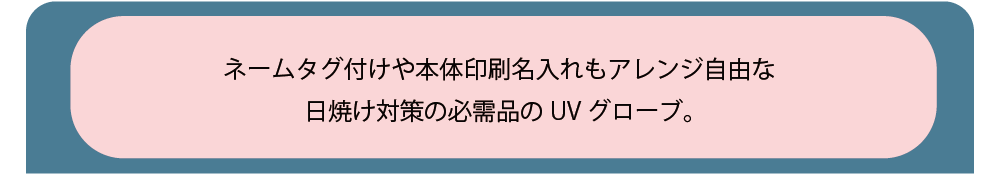 商品 UVグローブ 対応可能数量 500個~(商品仕様や案件ごとに異なります。) サイズ オリジナル形状対応可能 本体色 PANTONE指定 or 工場対応色より選択 対応可能素材 ポリエステル 対応可能加工 接触冷感加工、抗菌加工、UVカット加工 名入れ シルク印刷、パッド印刷、インクジェット印刷、転写印刷、オフセット印刷、タグ付け、刺繍 サンプル データ入稿後 約10~15日後 スケジュール 校了後 約40日~ (お急ぎの場合はご相談ください) その他